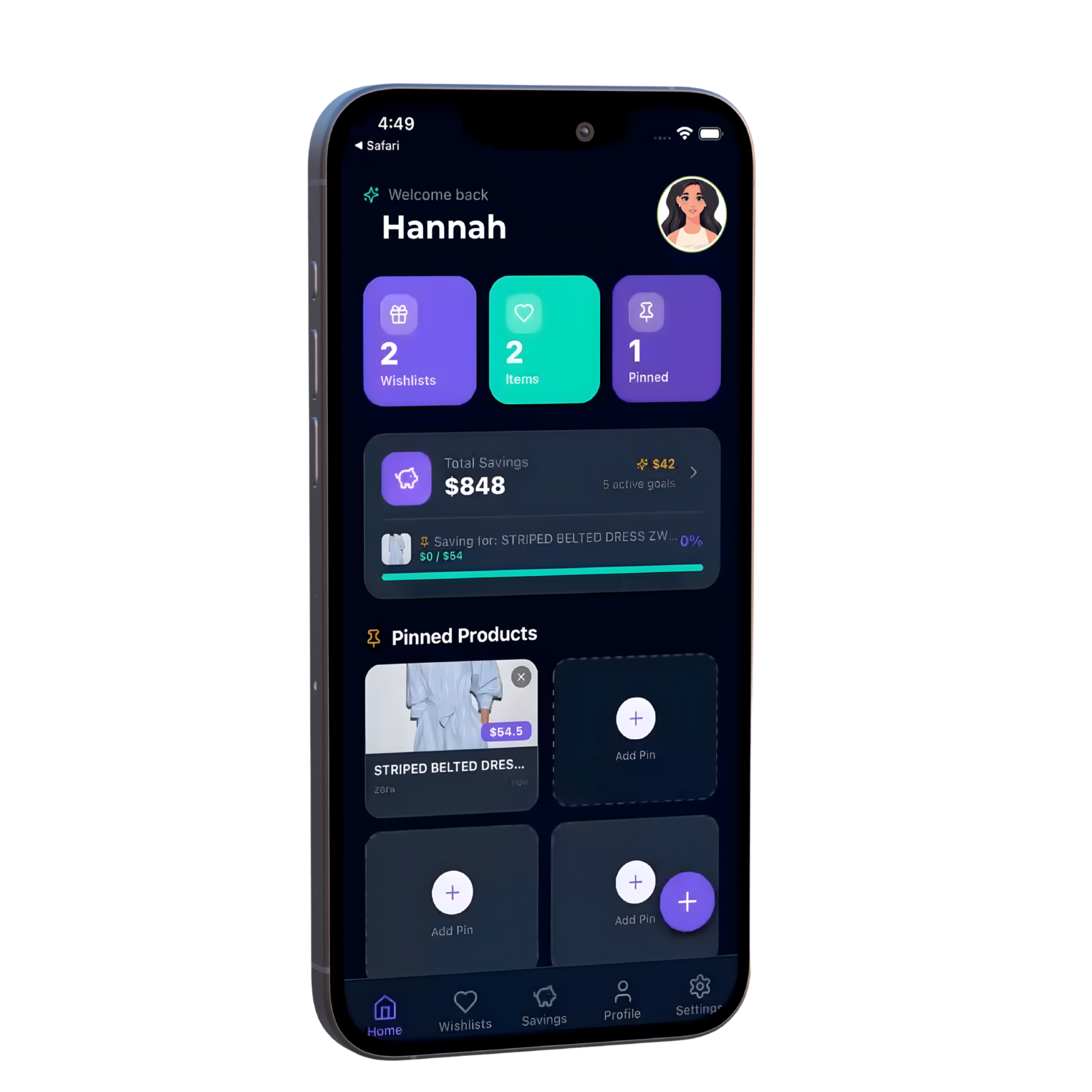 Link your bank and automatically round up everyday purchases towards your wishlist.